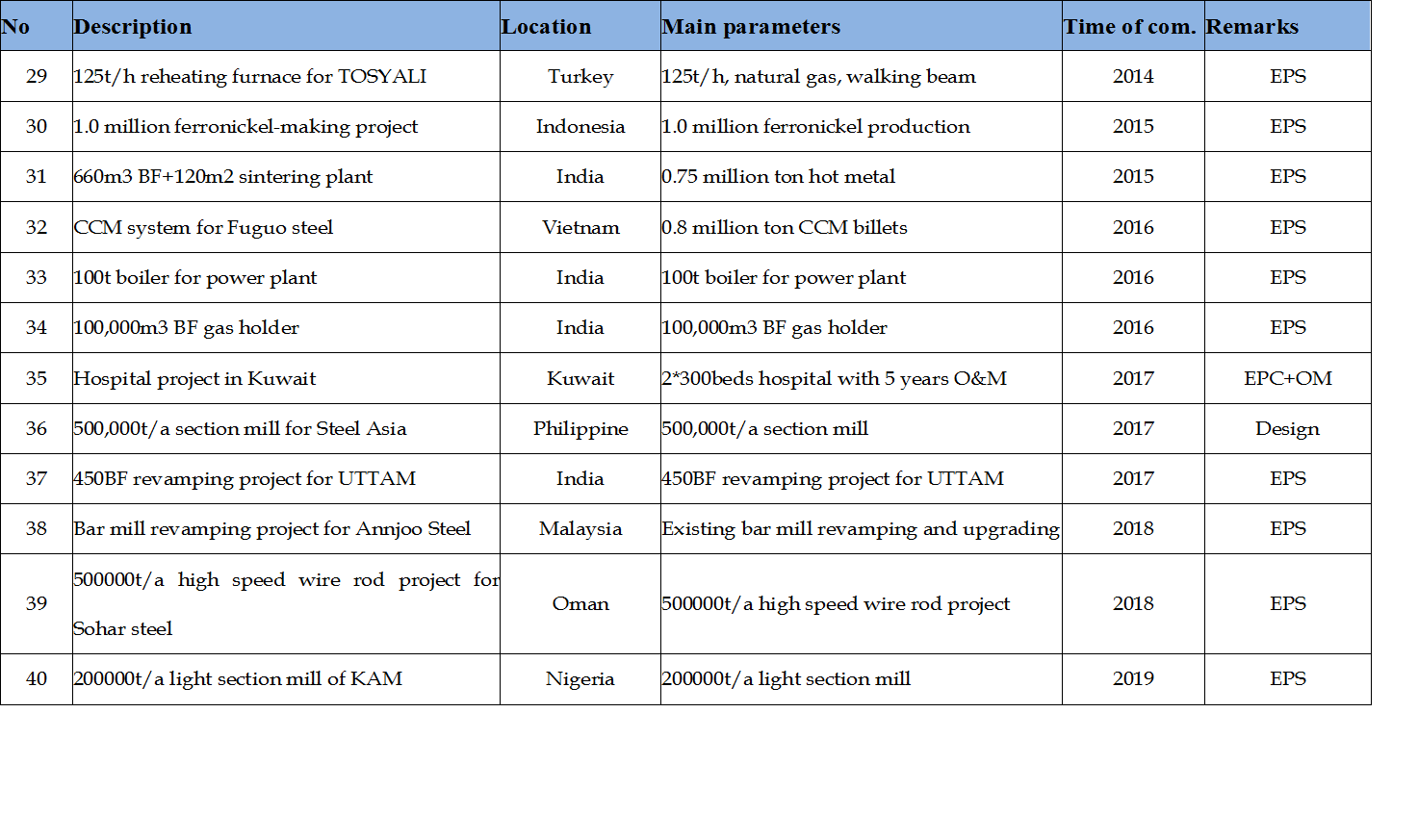 Overseas projects