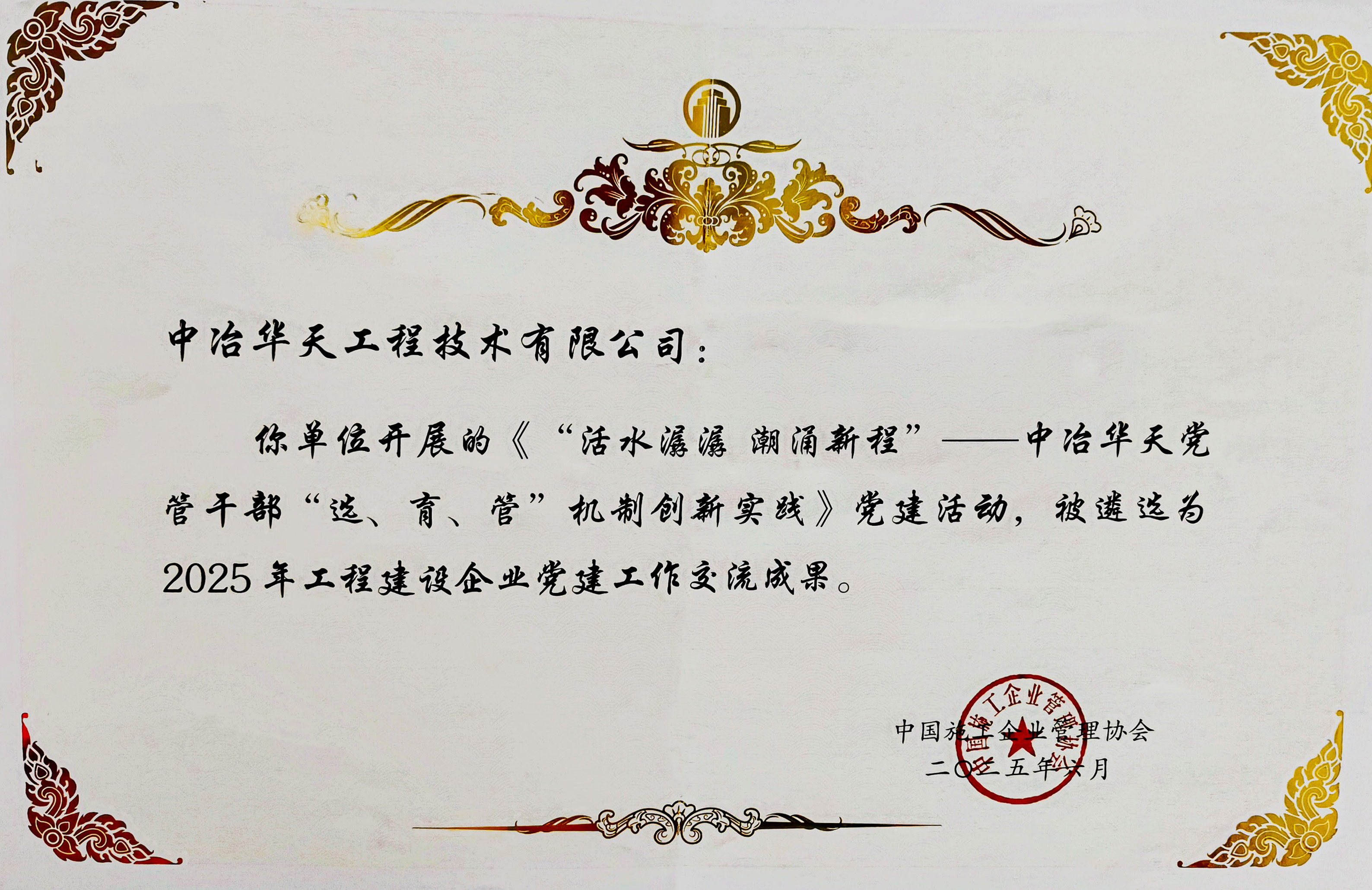 近日,中國施工企業(yè)管理協(xié)會發(fā)布《關(guān)于推廣2025年工程建設(shè)企業(yè)黨建工作優(yōu)秀成果的通知》,中冶華天報送的《“活水潺潺潮涌新程”——中冶華天黨管干部“選、育、管”機制創(chuàng)新實踐》成功入選2025年工程建設(shè)企業(yè)黨建工作交流成果,是繼2024年《黨建+文化為企業(yè)發(fā)展凝心聚力、增光添彩》獲獎之后,中冶華天黨建成果在行業(yè)內(nèi)的再次亮相,彰顯行業(yè)協(xié)會對華天以高質(zhì)量黨建治企興企強企的高度認(rèn)可。